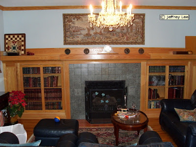 17′ Mantel By jeffreypmlee | woodwork | No Comments For this mantel we added bookshelveswith sliding glass doors.